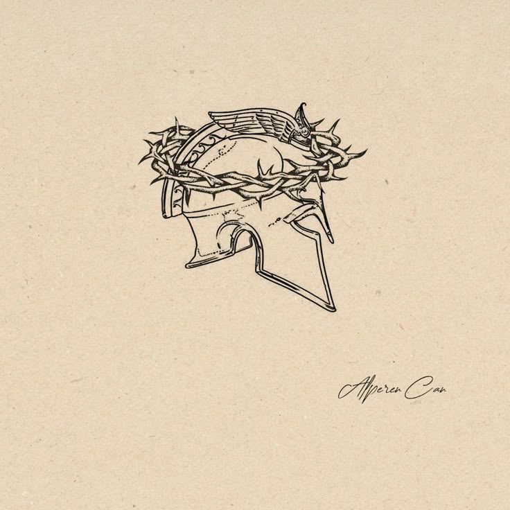 - Draped around the top of the helmet is a crown of thorns, a direct symbol associated with the suffering of Jesus Christ, often interpreted as a sign of sacrifice, redemption, and humility.