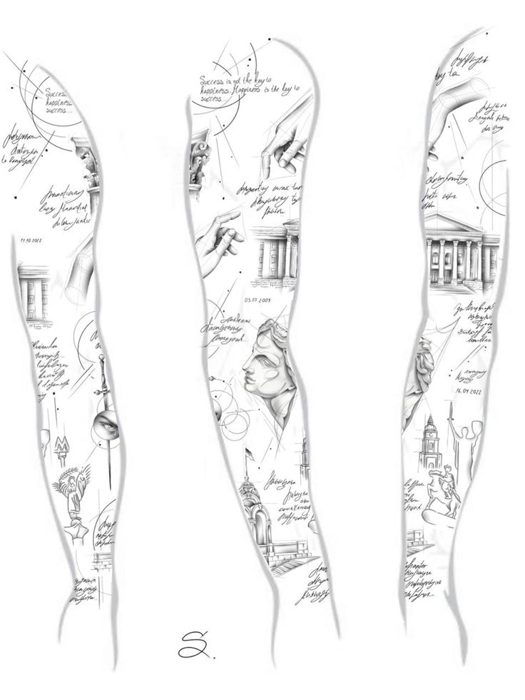 This sleeve appears to tell a story of human advancement, intellect, and emotion—a visual journey through art, architecture, knowledge, and time. It’s likely meant for someone who values history, culture, self-growth, and creative thought.